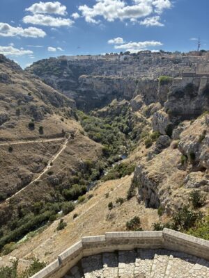 It wasn’t a gradual arrival, the way most towns introduce themselves with suburbs and gas stations and modern sprawl. Matera arrives the way a revelation does: one moment you’re in “not much,” and the next you’re staring at a stone body so dense with history that it feels like time has compacted into architecture. The first sightline catches you off guard. The city doesn’t sit politely on the land; it appears to be the land, folded into dwellings, terraces, stairways—an inhabited geology.