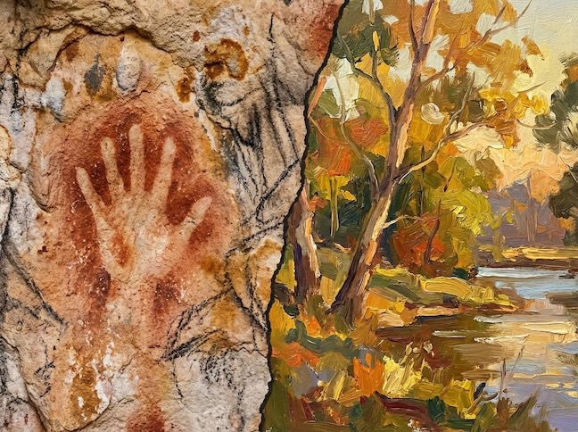 Much of the style and iconography of the Theran wall paintings were clearly derived from those seen on Crete, where the greater part of Minoan civilization flourished. This included the common tripartite organization of the wall compositions, females represented in white flesh and males in brown, and themes including natural world elements and ritualistic, productive human activity. Although the artists drew from centuries-old Cycladic tradition in art creation, most of the Theran artists trended toward the avant-garde in their representations, a characteristic that set them apart from other artistic traditions and achievements of the time.