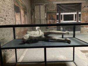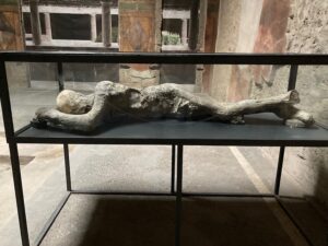 Any archaeologically-oriented visit would not be complete without including visits to key museums. This is where one can see, close-at-hand, some of the most important and/or most spectacular or diagnostic individual artifacts unearthed at the sites explored. In my case, there were museums attached to or related to most of the sites encountered during my visit, perhaps the most iconic of which was the famous National Archaeological Museum in Naples. Here, for example, the curators have displayed some of the most magnificent fresco paintings and other works of art and artifacts of Pompeii, among other sites. Here they are kept safe, preserved from the deleterious effects of the exterior environment, and close-at-hand for further study and conservation — and, of course, as a convenient one-stop destination for the public to see some of the most impressive objects representing the archaeology and ancient culture of the region.