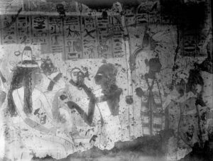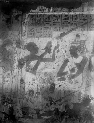 Tomb 286 shows original elaborate paintings and how they have encountered time-and-elements-related damage. Coxe Expedition Dra Abu el-Naga, Thebes, Egypt, 1922-1923. Courtesy Penn Museum Archives