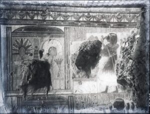 The exhibition opens into another layer through archival photographs, where walls appear in stages, fragments emerge, and figures move within the tomb, measuring, observing, recording as the space becomes visible.
