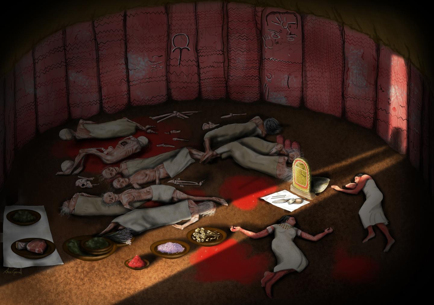 Our species is ecologically unique in its ability to occupy, and specialize in, a variety of different environments, as demonstrated when it began to colonize the entire planet between approximately 300 and 60 thousand years ago. Image by John Klausmeyer, concept by Brian Stewart, University of Michigan. Aerial view of reindeer herd from zanskar / iStock.