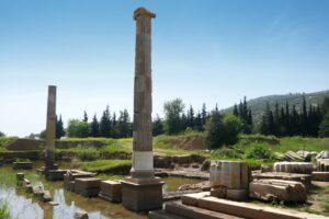 - The Hecatomb Block: While ancient writers describe the sacrifice of animals to all gods, the Hecatomb (sacrifice of one hundred animals) ritual’s first and only archaeological proof was found at Klaros. The discovery of one hundred animal-tethering blocks (rectangular stone blocks with an iron ring on each) in the area between the temple and the altar concretely proves Apollo’s attribute as Hecatombaios (the god to whom numerous sacrifices are offered).
